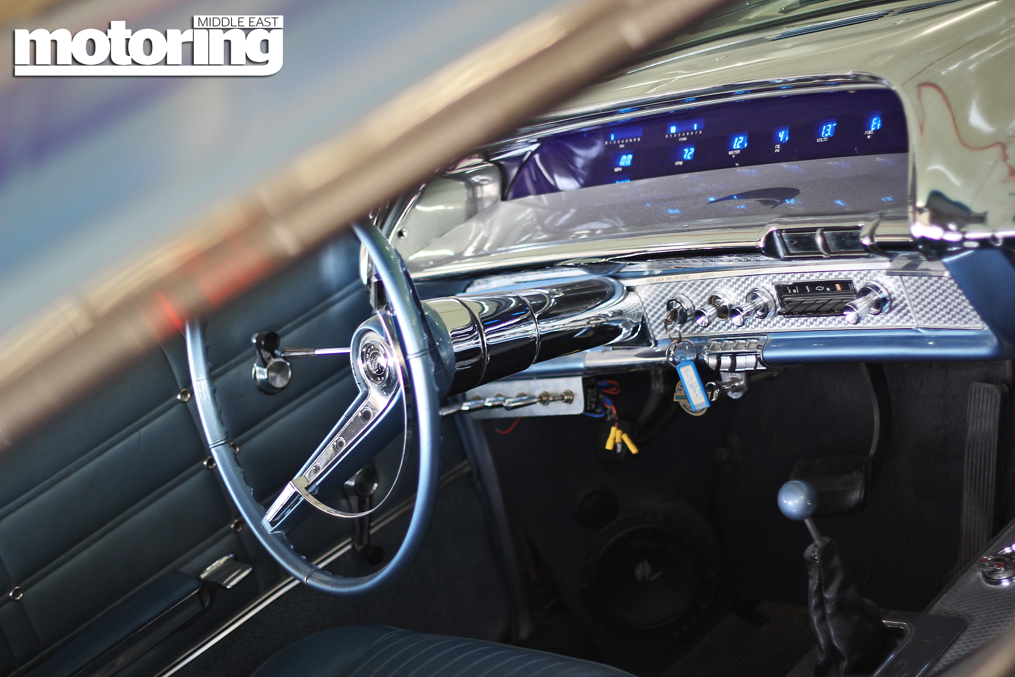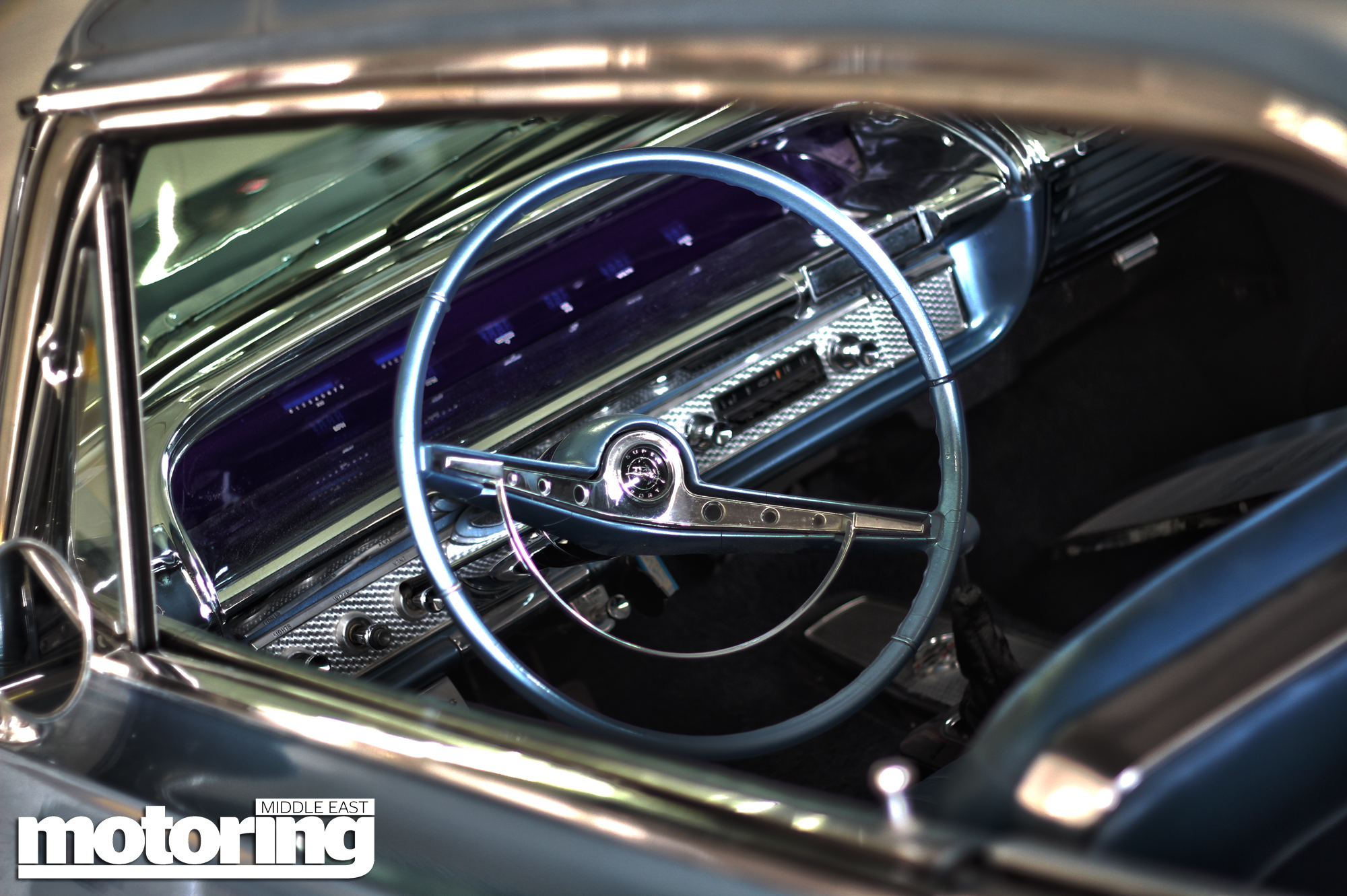 The 63 Impala in this shoot was organised for us by car customisation specialist Bear Garcia of Hooligan Customz (formerly of West Coast Customs) and is owned by businessman and restaurateur (check out Wok It in Karama), Abdullah Ahmad, and is a restored and heavily modified lowrider-style example with full hydraulic suspension that allows it bounce in a truly astonishing and mind-boggling manner.