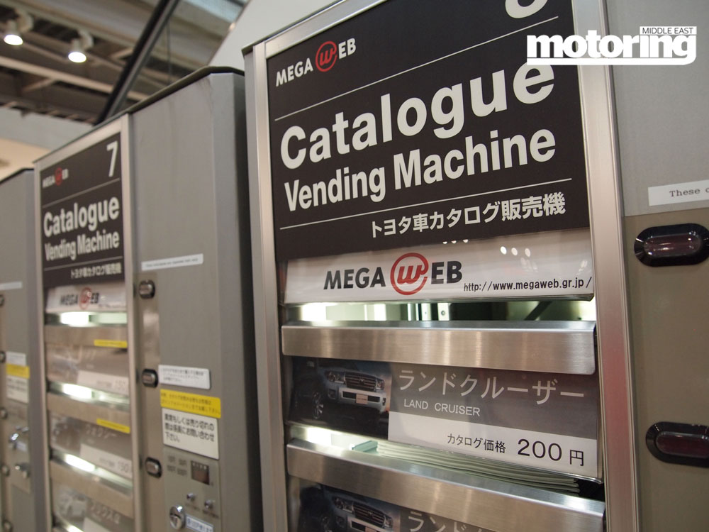 The Japanese have a well documented love of vending machine. Wander the streets of Tokyo and every few feet, you’ll come across a machine selling drinks, snacks, cigarettes, and umm, sometimes less savoury items. True to form, Mega Web also offers its own vending machines – in this case, product brochures for 200 yen (about Dh8.5). Only problem is, they’re all in Japanese!