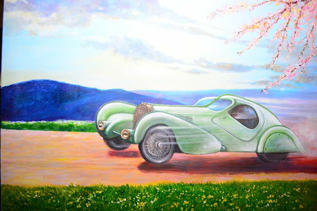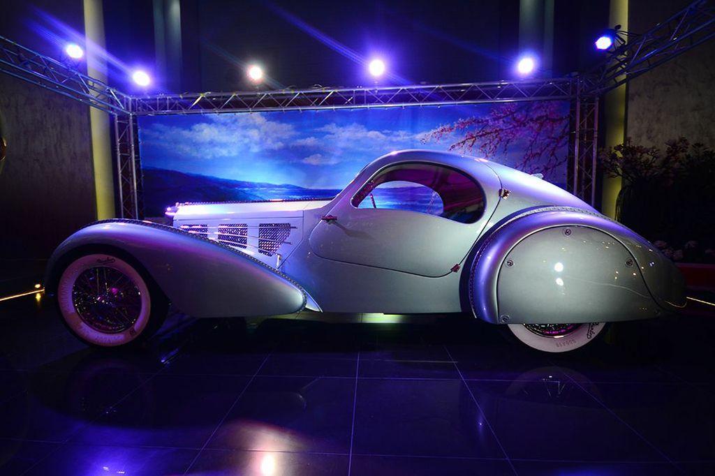 Bugatti Type 57 Aerolithe recreation on display in Kuwait Classic Car Museum