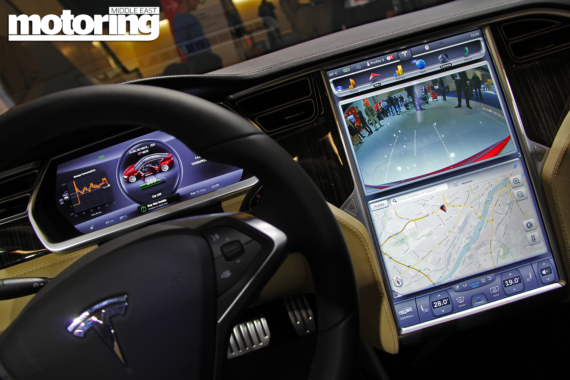 Everthing inside is digital including the entire instrument panel, and there’s a massive TV screen placed vertically in the middle of the dashboard that controls everything.
