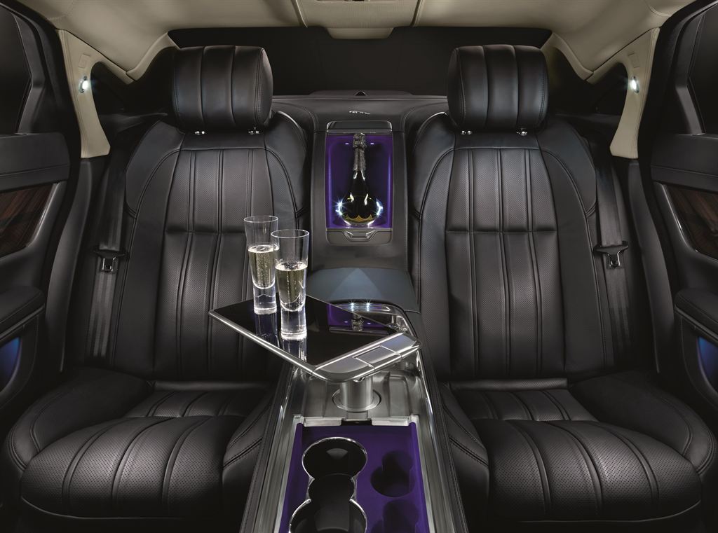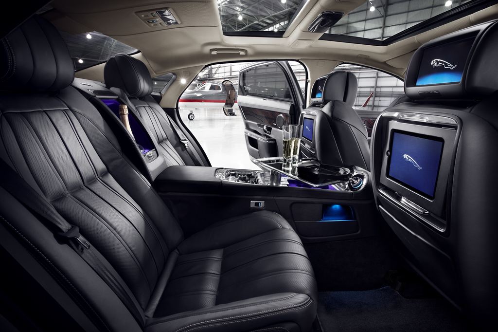 XJ Ultimate features changes to the exterior and interior concentrating on luxury particularly for rear passengers. It includes individual rear seats with electric adjustment and massage, plus electrically folding tables (made from solid aluminium), integrated iPad functionality, enhanced entertainment systems and a champagne chiller.