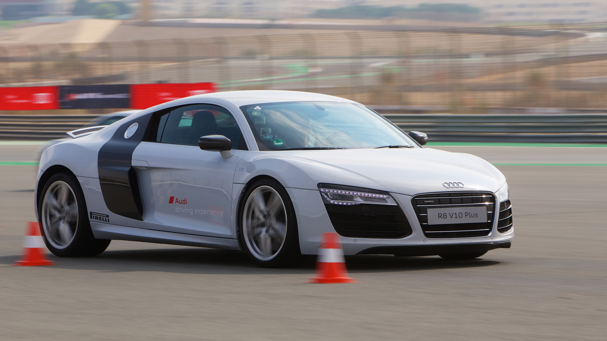 We attended a session at the Dubai Autodrome in which we put the top-spec R8 V10 Plus through its paces in a series of exercises including braking and avoidance, slalom and laps of the full circuit. All of this proved, and in fact confirmed, that the perfect mid-engined balance, all-wheel drive grip and the electronic stability systems, make this one of the easiest cars to drive hard, currently on sale.